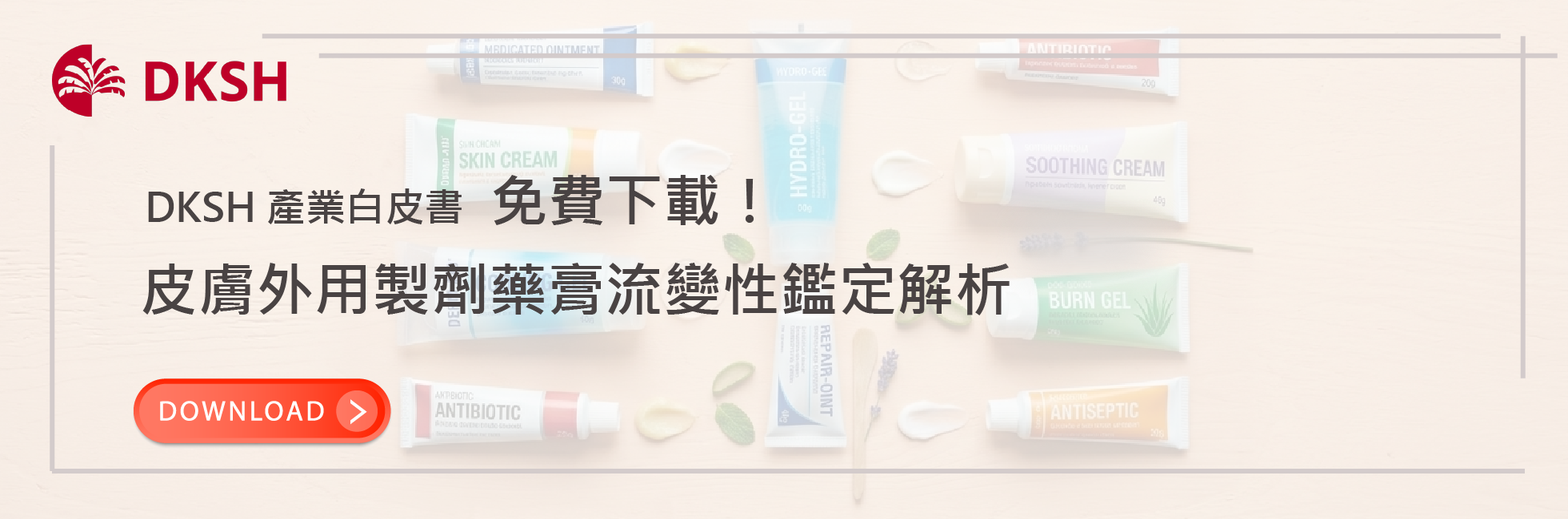 填寫表單,領取DKSH 台灣大昌華嘉所準備的白皮書,了解與《皮膚外用製劑的品質考量指導原則》所相關的流變性質鑑定方案以及實驗案例,助您在法規的規範下仍如魚得水。